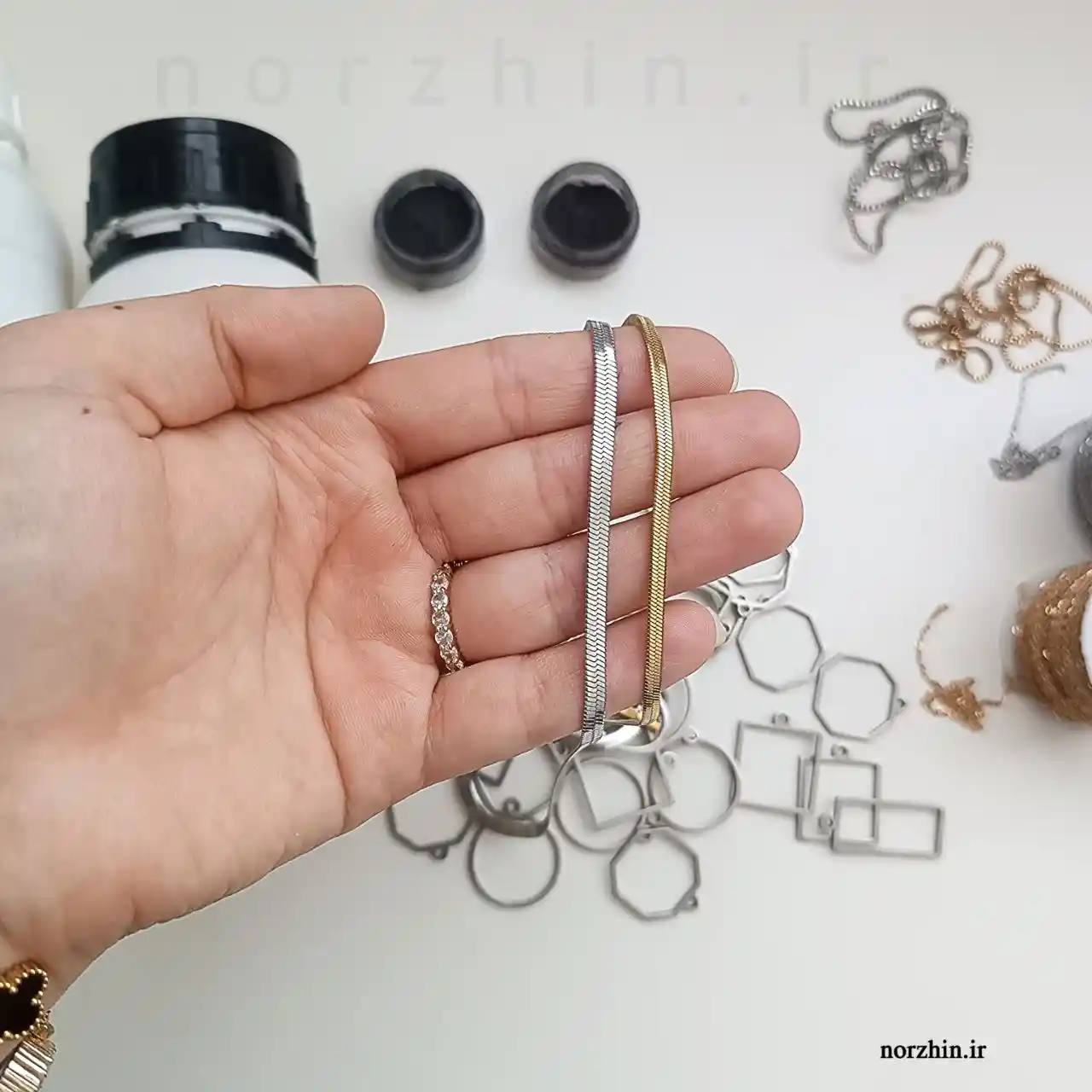زنجیر ماری نیز به طول ۴۵ سانتیمتر برای ساخت ۴ گردنبند در نظر گرفته شده است.
